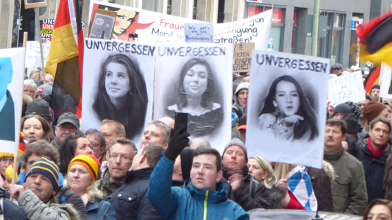 Rücktritt von Polizeipräsident Kant und Innensenator Geisel. Heute demonstrierten in Cottbus wieder 5000 Menschen gegen den mangelnden Schutz der Bevölkerung vor den "Schutzsuchenden", die die Stadt unsicher machen. Am 3. März findet in Kandel in der Pfalz eine weitere Frauendemonstration statt, wiederum unterstützt durch Männer. Der Mord an der 15jährigen Mia Valentin (auf dem Plakat in der Mitte) durch den von den Behörden als minderjährig eingestuften afghanischen "Schutzsuchenden" Abdul Mobin D. hat das Fass zum Überlaufen gebracht. Die Zeit, in der das Volk auch im Westen auf die Straße geht, ist jetzt gekommen. Harald Noth, Lueg ins Land ohne Scheuklappen |